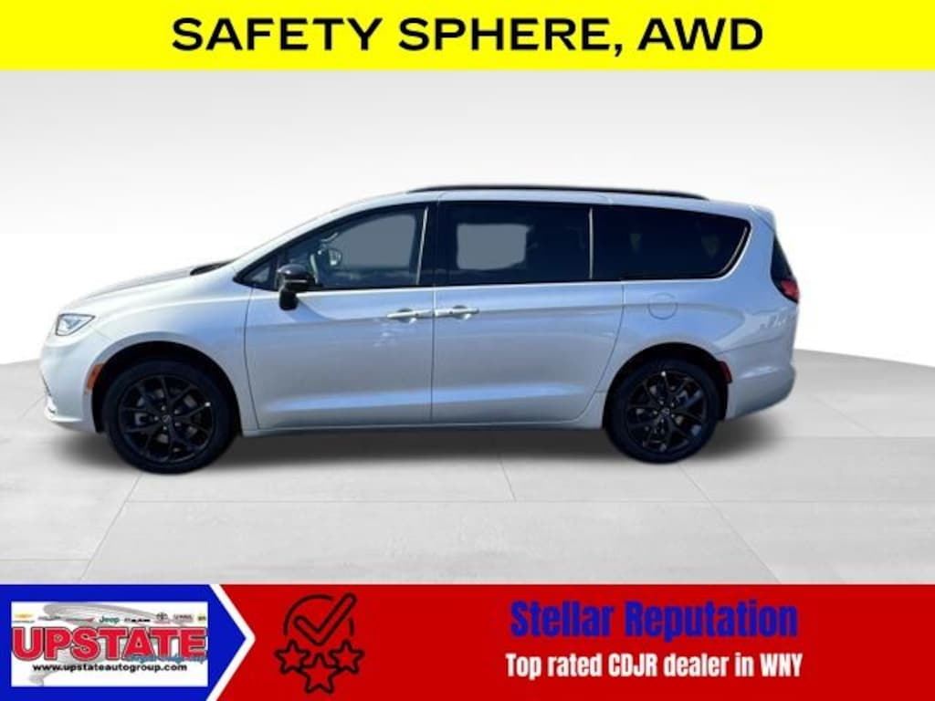Check out this stunning 2026 Chrysler Pacifica Limited AWD S Appearance in Silver Mist Clear Coat with sleek black leather bucket seats and bold 20" aluminum wheels. 🚐🖤