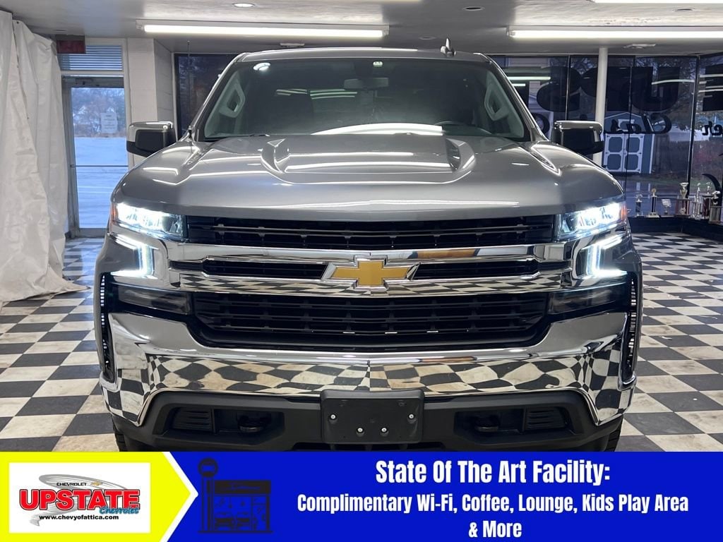 3 EASY WAYS TO BUY FROM UPSTATE CHEVROLET! **CALL US AT (585) 591-2300 **, **VISIT US ONLINE AT WWW.CHEVYOFATTICA.COM**, **TEXT US 24/7/365 @ (585) 765-4030** 8-Speed Automatic, 4WD, Black Cloth. Clean CARFAX. 2021 Chevrolet Silverado 1500 LT 4D Crew Cab 4WD 8-Speed Automatic 2.7L Turbo Satin Steel Metallic